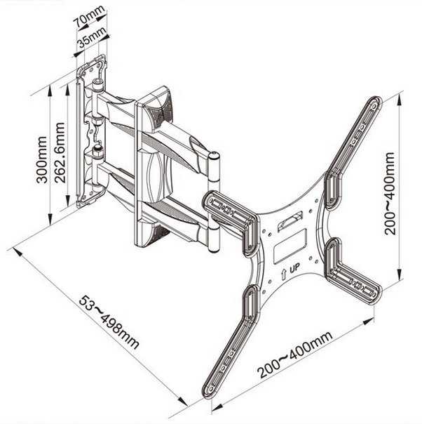 Двух плечевая система позиционирования с необслуживаемыми (клепанными) технологичными шарнирными узлами, обеспечивающая мягкий и легкий ход при любой допустимой нагрузке, и при этом гарантированно отсутствие паразитного люфта и провиса панели по уровню горизонта. Надежная стальная конструкция обладает большим эксплуатационным ресурсом, декоративные пластиковые элементы обеспечивают эстетичную составляющую кронштейна. Глубокий регулировочный диапазон угла поворота до +- 900 (прямой угол влево и в право) за счет  дистанционного вылета от 50 до 500 мм. Необходимый и достаточный угол наклона от -50 до +80, с плавной регулировкой.